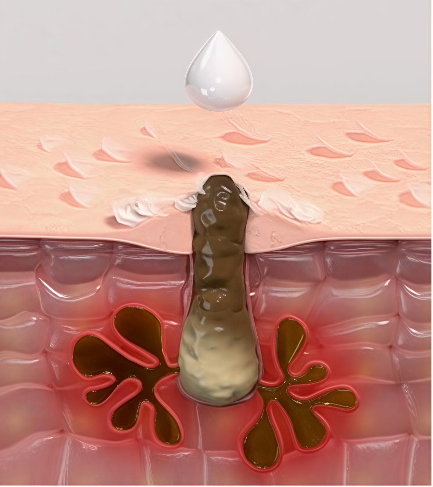 This is pushed-out real dead skin,not a phenomenon of the product clumping together.